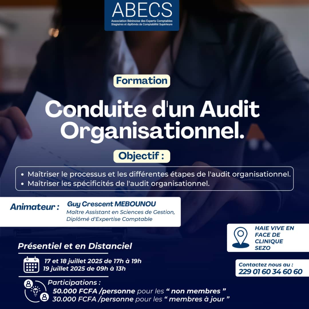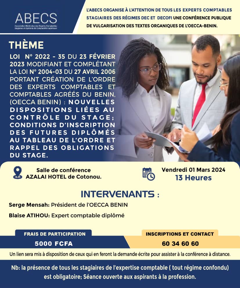 Ma fierté est inestimable de faire partie de cette belle famille des professionnels de l’audit et de la comptabilité, qui constitue l’antichambre de l’Ordre des Experts-Comptables et Comptables Agréés du Bénin (OECCA-Bénin).